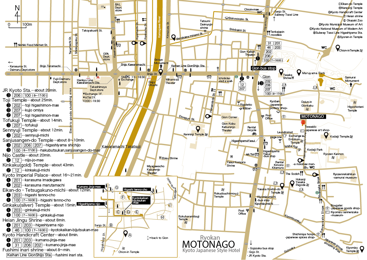 So many famous Kyoto attractions are just 15 minutes - or less - from MOTONAGO on foot